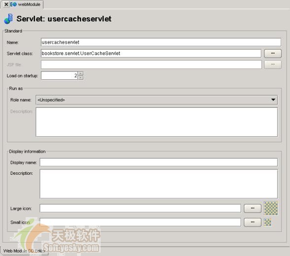 圖標(biāo)的節(jié)點表示暫時還沒有對應(yīng)的配置內(nèi)容。我們展開servlets節(jié)點,定位到usercacheservlet并雙擊這個節(jié)點,dd編輯器調(diào)整界面對usercacheservlet這個servlet進行配置,如下圖所示: