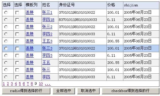 • 關于datagrid的幾點簡單應用,功能包括radio的單選,checkbox的多選,鼠標移動到行上顏色變深,鏈接傳遞多參數等功能。這里radio和checkbox都使用的是html控件。