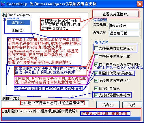 '括號內的過程是計算語言包文件的文件路徑和文件名稱,文件名稱是以可執行文件的路徑為準,其文件名后加".lag"為擴展名的文件.要翻譯該文件,請復制后打開使用文本工具翻譯.在后續版本中,將提供部分翻譯和轉換方面的工具.