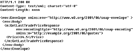 中的樁(stub)。轉化成xml格式后,soap終端名(遠程調用方法名)及其他的一些協議標識信息被封裝成http請求,然后發送給服務器。如果應用程序要求,服務器返回一個http應答信息給客戶端。與通常對html頁面的http get請求不同的是,此請求設置了一些http header,標識著一個soap服務激發,和http包一起傳送。例如:對于一個詢問股票價格的應用程序,服務器端具有組件提供某股票當前的價格,組件是com或corba在服務器上建立的。客戶端發送一個soap請求給服務器詢問股票價格。服務器依賴于服務器上的soap網關,使用內嵌的html對象調用合適的方法,然后把得到的價格通過soap應答傳給客戶端。