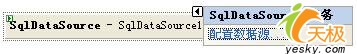 2、點擊sqldatasource控件右上方的智能標(biāo)簽,如下圖所示。并且單擊"配置數(shù)據(jù)源" 鏈節(jié)。