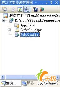 7、在完成其他的步驟后,將會在解決方案資源管理器窗口中自動添加一個web.config配置文件。保存該程序的相應(yīng)的配置信息。