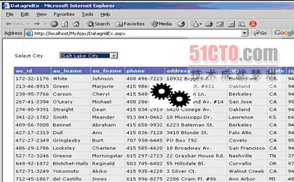 這個文件負責整個進程的處理請求和響應。這個文件將生成xmlhttprequest并且把選擇的城市發送到ajaxserver.aspx頁面。一旦返回,它得到一個類似于數據庫表的輸出結果—該結果將被填充到datagrid中。
