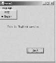 在form1 窗體上添加三個控件(見圖1):主菜單mainmenu、標簽label1和按鈕button1。label1和button1控件的屬性均采用缺省設置。mainmenu控件中添加三個菜單項menuitem1、menuitem2、menuitem3。text屬性分別設為“語言”、“中文”和“english”。menuitem2、