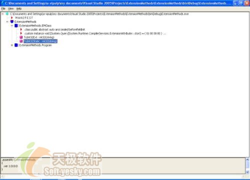 [system.query]system.runtime.compilerservices.extensionattribute::.ctor() = ( 01 00 00 00 ):本行代碼說明擴展特性被使用了。