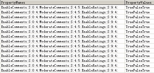 先分析一下存儲的數據,首先是propertynames字段,“enablecomments:s:0:4:moderatecomments:s:4:5:enableratings:s:9:4:” “enablecomments”其實是在實體類中定義的一個屬性名稱,“:”表示定義完畢,“s:0: