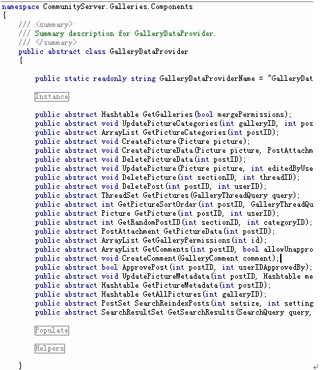 ,抽象類被存放在相應項目的providers目錄下,以gallery項目為例子,它的命名空間是communityserver.galleries.components