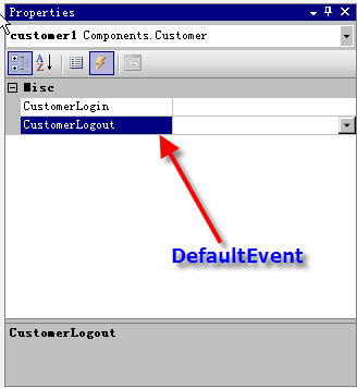 defaultvalueattribute:property的默認值,選中組件,其event窗口中默認選中在這個event上。