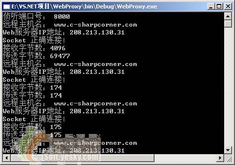 此時客戶端的設置就完成了,在確定ip地址為"10.138.198.213"的這臺計算機已經運行上面介紹的web代理程序后。打開客戶端的ie瀏覽器,并輸入要瀏覽的網址,就可以通過web代理服務器來瀏覽網頁了,圖04是web代理服務程序在服務器端運行時的界面。