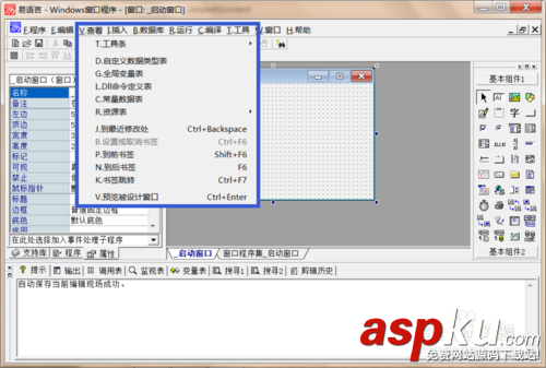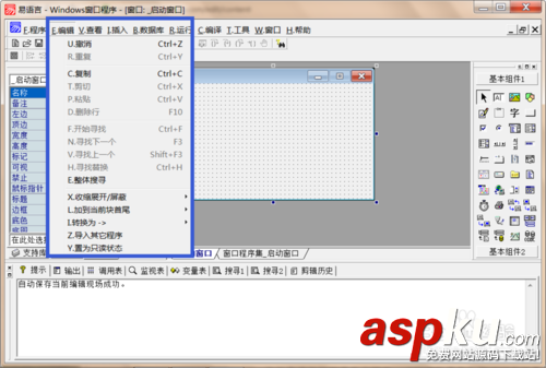 和其他應用程序的編輯菜單一樣,這個菜單集成了所有的文本編輯命令,例如“剪切”、“復制”、“粘貼”、“查找”等,還包括“菜單編輯器”,用來編制程序的菜單。“編輯”菜單主要是針對代碼編輯窗口而言的。