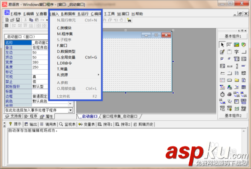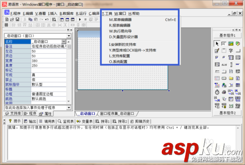 相當于其他應用程序的“文件”菜單,這個菜單主要負責文件操作,例如“新建”、“打開”、“保存”、“另存為”等等,還包括“程序配置”、“易模塊管理”等。值得初學者注意的是,在易語言的“程序”菜單中還包括“編譯獨立發布版本”的菜單項。通過這個菜單命令,用戶可以把編制好的程序打包成exe可執行文件。