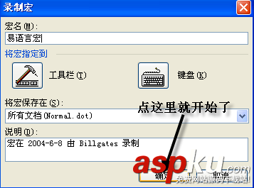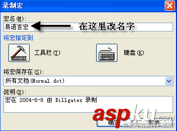 在“宏名”的編輯框中,我們可以改變我們將要創建的“宏”的名稱,我們這里就把名字改為“易語言宏”