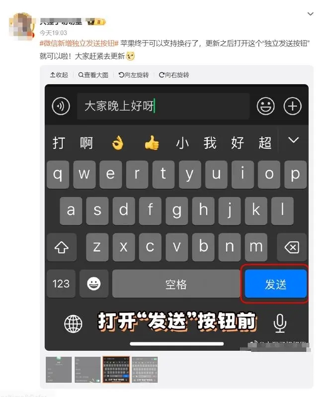 微信新增獨(dú)立發(fā)送按鈕 蘋果終于可以支持換行了