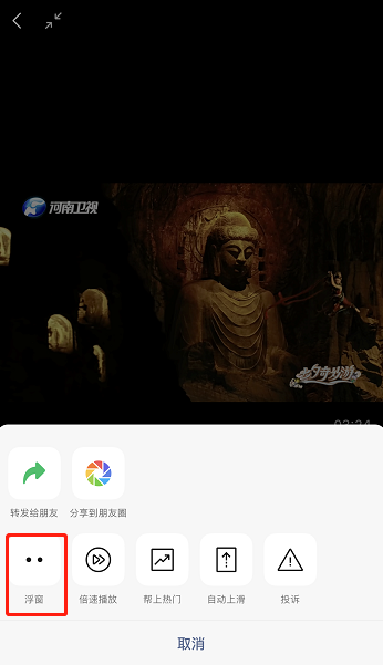 在視頻號界面點擊下面的轉發按鈕,新增了“浮窗”功能,點擊即可將視頻號收為浮窗。