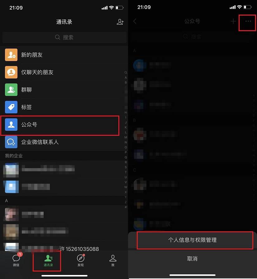 在iOS微信 8.0.27 正式版新增了微信公眾號授權管理功能,用戶可在“通訊錄” -“公眾號 ”,然后點擊右上角的“...”-“個人信息與授權管理 ” 中對已授權的公眾號進行管理。