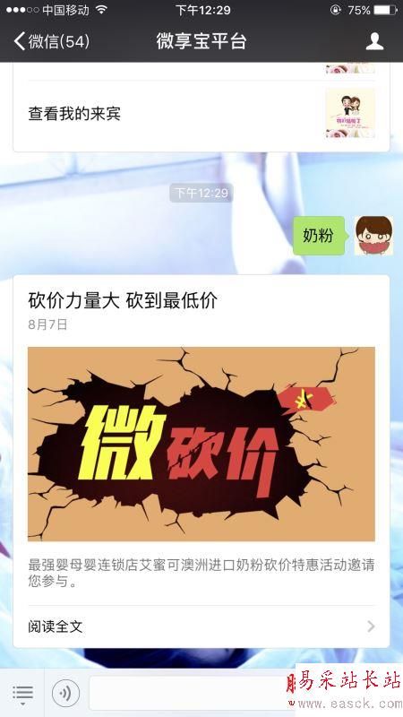 4.往公眾號里回復活動的關鍵詞,點擊微信公眾號彈出的封面進去就可以參與活動了。制作后臺點擊'查看此商品訂單’按鈕,可以看到粉絲提交訂單的具體信息,點擊結尾的參與砍價按鈕,能看到詳細的參與記錄。