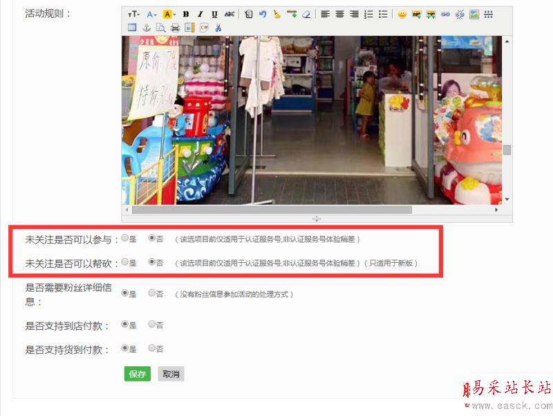 3.點擊左側的微信商城,找到“微砍價”功能。填寫關鍵詞、標題等內容,上'傳回復圖片,注意選擇新版本,設置每人的砍價時間、原價、底價以及每次砍價的范圍。獎項及設置規則詳情,勾選需要關注才能參與,需要關注才能幫砍價,全部弄好以后點擊保存