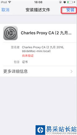 由于是https的請求,需要在手機(jī)端安裝證書才可以解密請求,charles的證書可通過手機(jī)瀏覽器安裝,手機(jī)瀏覽器訪問http://chls.pro/ssl,點(diǎn)繼續(xù)訪問此網(wǎng)站,會提示安裝證書。