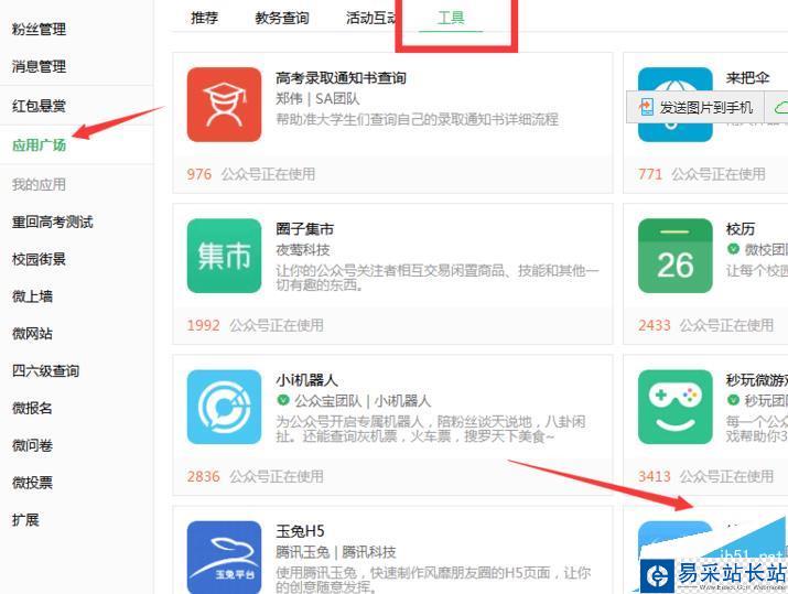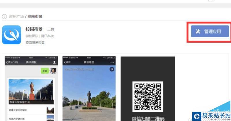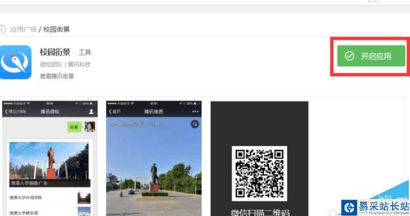 2、找到并點擊進入“應用廣場”,在“工具”里進入“校園街景”應 用頁面。如下圖: