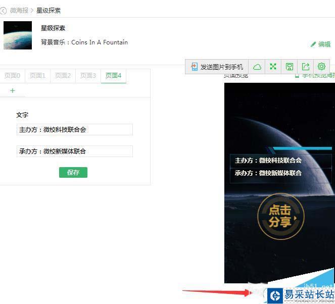 5、接下來你還需要編輯海報的內容,右下方有海報的預覽圖,編輯完成后,點擊右下方的發布,你的海報就能讓粉 絲一飽 眼 福啦!如下圖:
