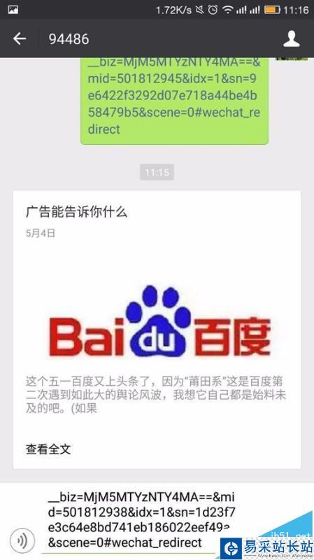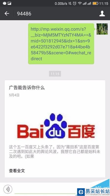 4、稍后消息會推送到手機上,手機查看這條圖文,點擊閱讀全文。