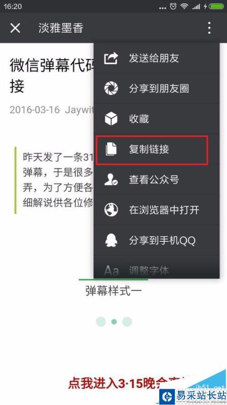 1、復制圖文鏈接地址。我們看到一篇圖文,首先打開該圖文,點擊右上角三點,點擊復制鏈接。