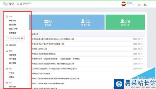 6、進入后臺后,可以查看各項資質.查看左邊完善公眾號資料