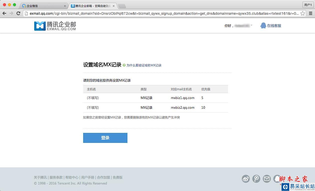 b、若上一步提交企業域名已在騰訊企業郵箱中被使用,需要驗證域名的所有權。(什么是域名的所有權及設置方法?)