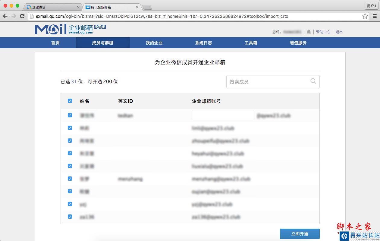 五、登錄騰訊企業郵箱,并為員工設置企業郵箱帳號
