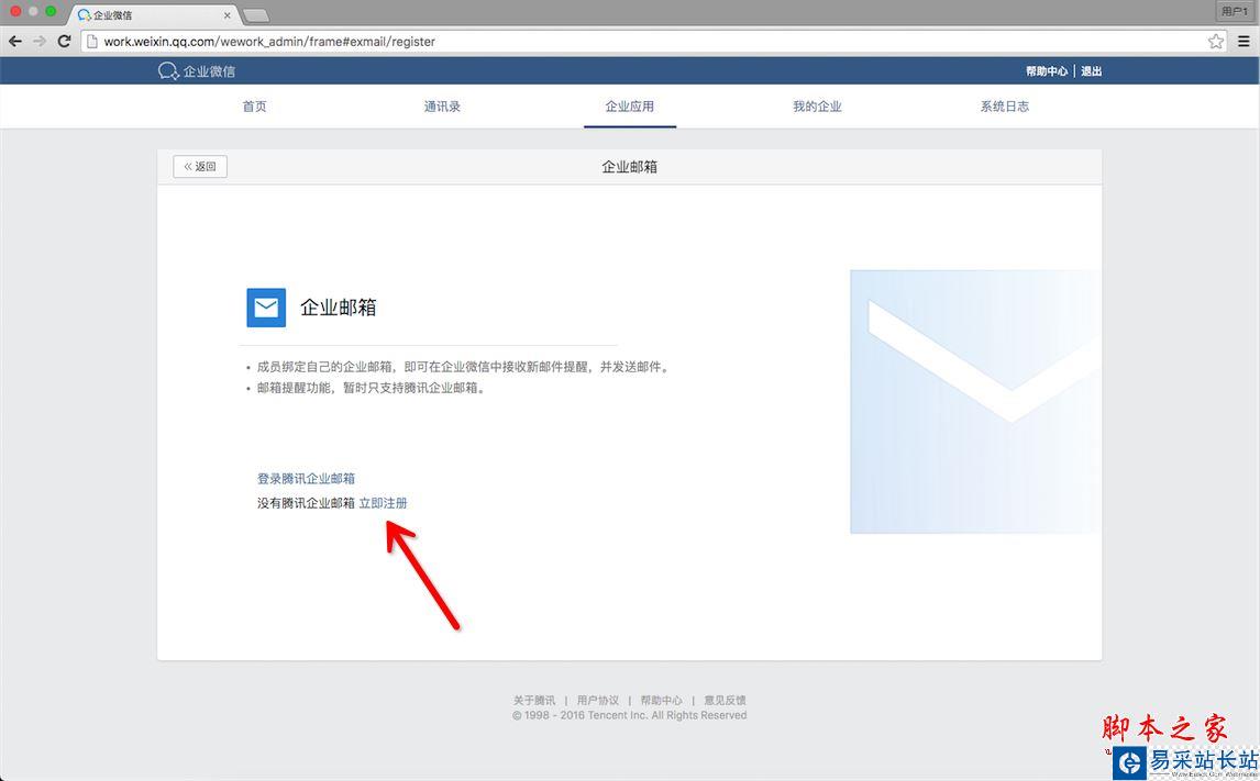 二、在“企業郵箱”的介紹頁中選擇“沒有騰訊企業郵箱?立即注冊”