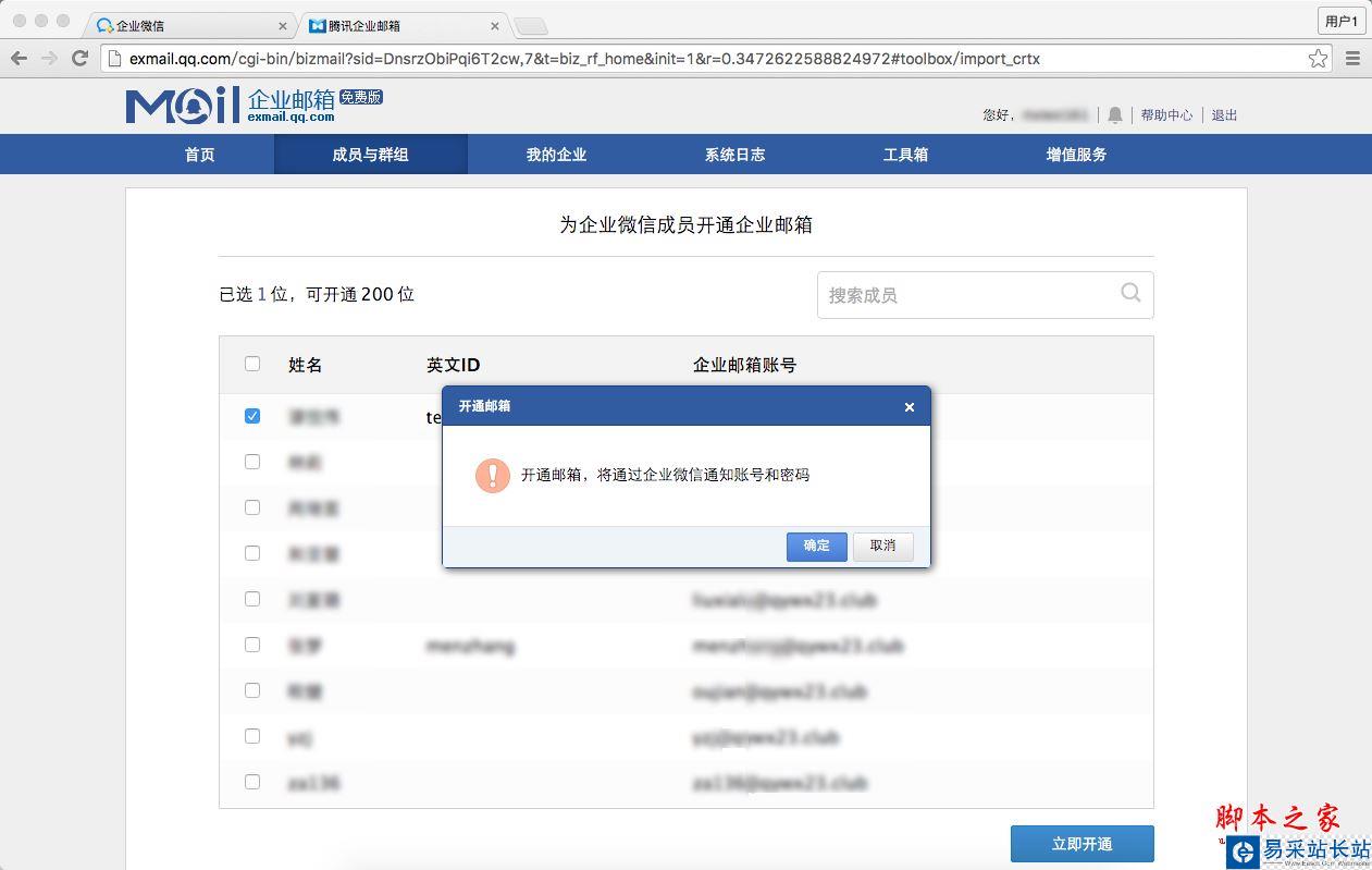 4)開通的帳號也會同步到企業郵箱。