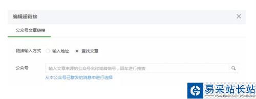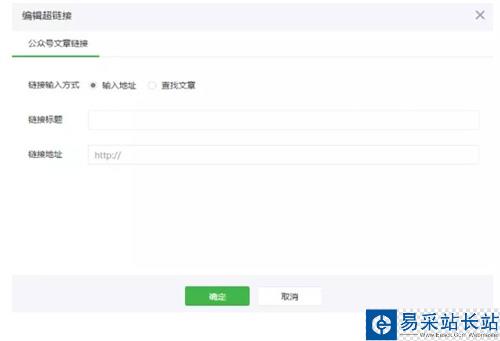 點擊超鏈接圖標后,可直接輸入鏈接和對應的文本內容,在圖文消息中插入文章。