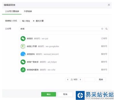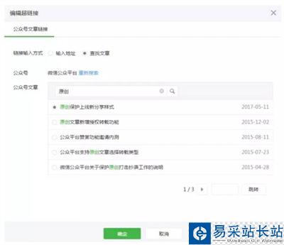 (2)、選定公眾號后再選擇對應的文章進行插入。列表中文章都可以點擊預覽。