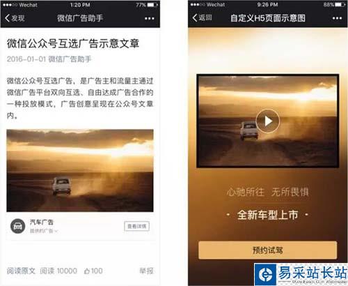目前,互選廣告支持“廣告推薦”與“內容定制”兩種合作模式。