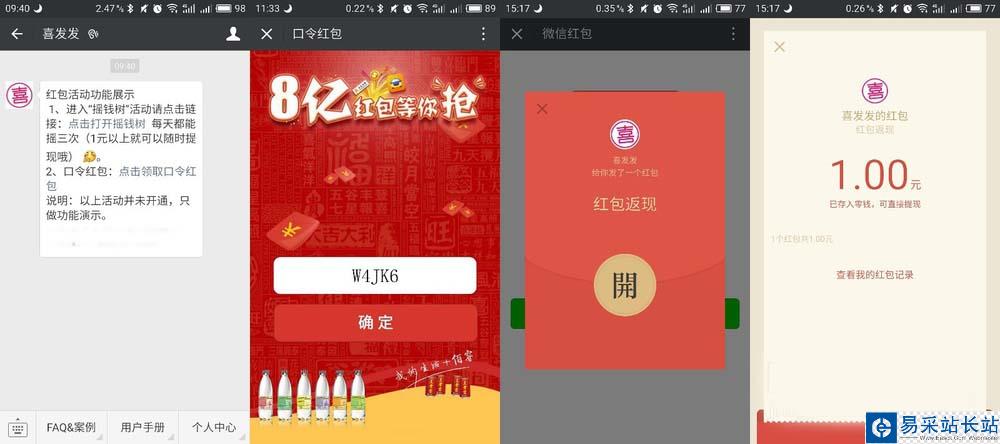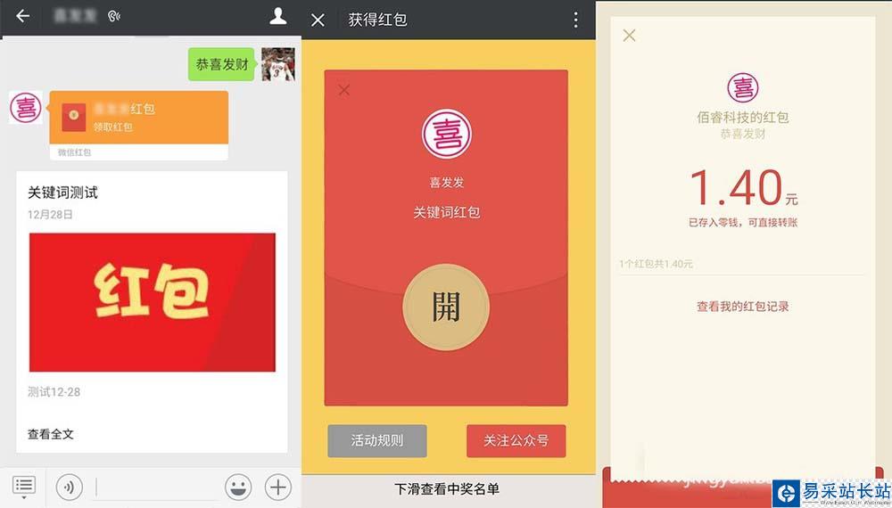 9、配置好之后,用戶直接在公眾號(hào)回復(fù)口令即可領(lǐng)到紅包。