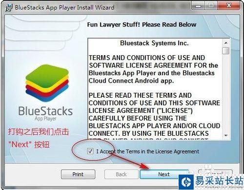 雙擊之后彈出來一個安裝對話框,將空白處打勾之后我們點擊下一步 "Next" 按鈕,繼續安裝程序。