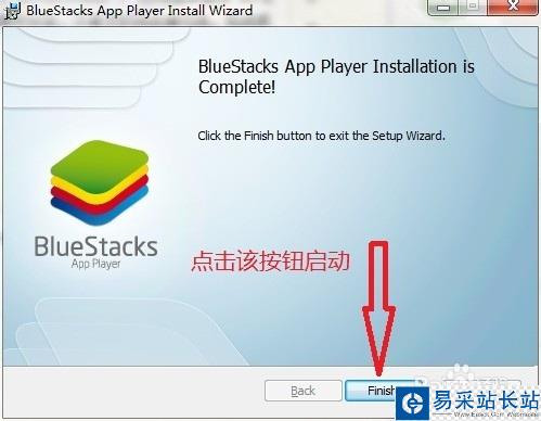 等待"BlueStacks" 安裝完成,然后我們點擊 "Finish" 按鈕,安裝完成 。