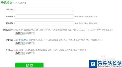 4、進入提交企業號碼的界面,這里要往下拉一點才可以看得到提交相關資料的界面,然后再輸入上傳所需要的真實材料。提交就可以了,然后就是等持審核,審核通過以后會發郵件到你的你的郵箱里面。