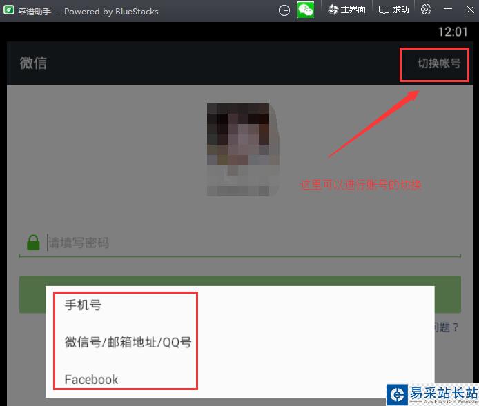 2.打開微信,在彈出的微信登錄界面選擇你要登錄的賬號方式(手機號/qq號、郵箱地址或者Facebook)。小編以qq號為例。