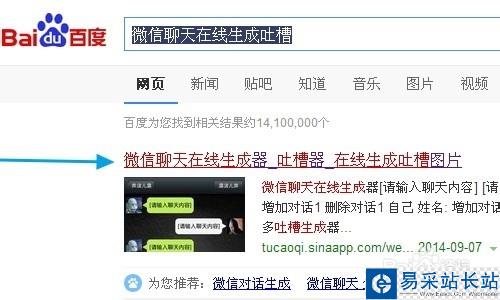 1、微信對話器分為網絡在線版,和本地軟件版,大致操作一樣,為了簡潔方便,小編就以網絡在線版為例,給大家詳細講講,首先我們百度搜索“微信聊天在線生成吐槽”