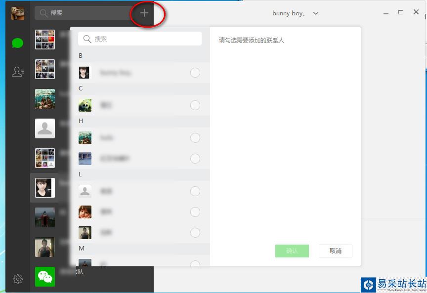 4、點擊+號我們可以搜索你微信列表里面的聯系人