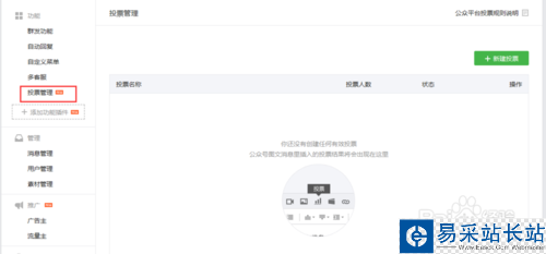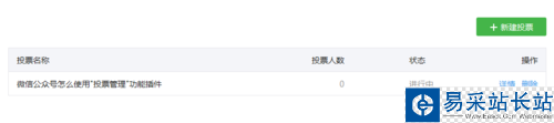 2、點擊做的功能按鈕下的“投票管理”,跳轉到如圖界面。