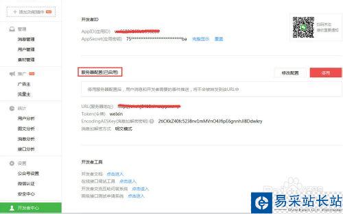 3、看到如圖所示界面,說明我們開啟了【服務器配置】功能,使用的是自己編寫的代碼,實現自動回復功能