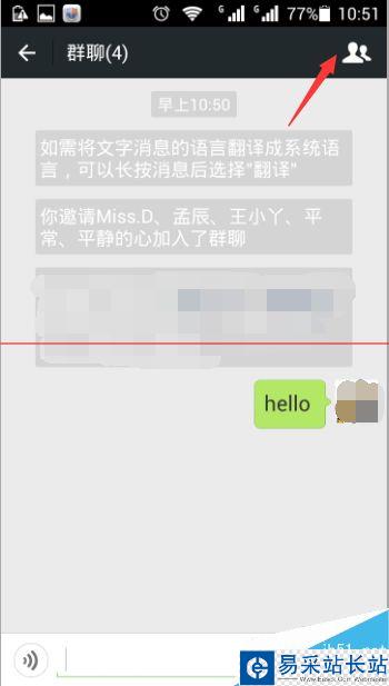 2、點擊進入以后,需要點擊右上角的兩個頭像的圖標,即聊天信息的圖標,如圖所示。