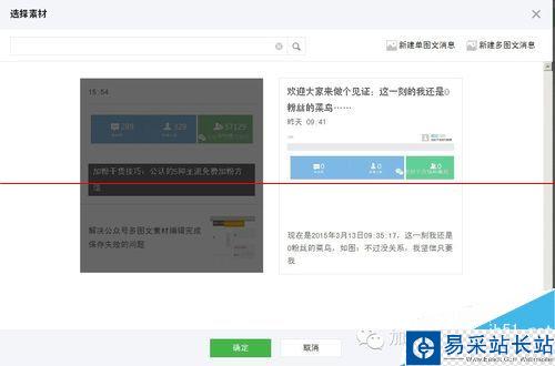3、同樣在發(fā)布文章的地方看不到多圖文的素材也是這個(gè)原因:您的多圖文只寫了一篇文章,還沒有真正的完成,所以不能發(fā)布……,看我編輯了兩篇后就出現(xiàn)了