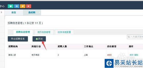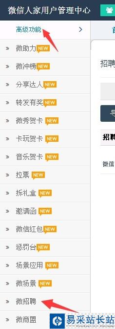 3,進去功能管理,找到高級功能-微招"聘",招聘信息管理,點添加。