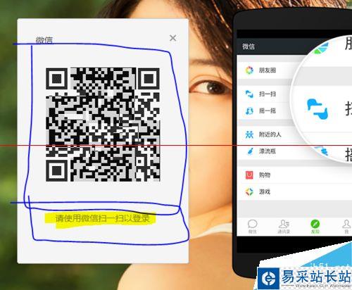 5、打開(kāi)手機(jī)上的微信,點(diǎn)擊掃一掃