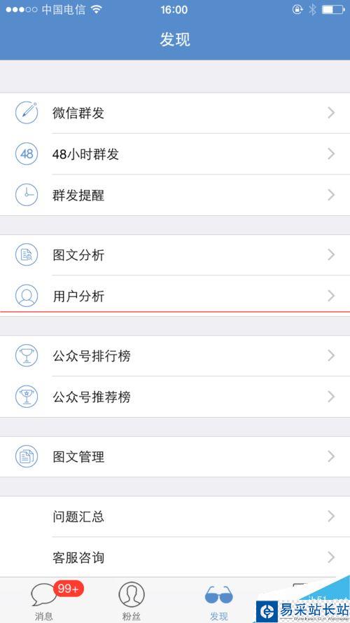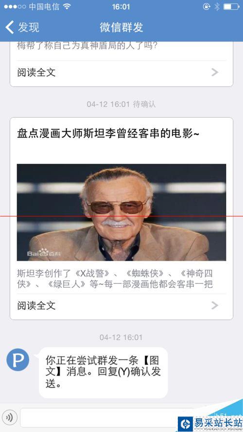 3、提醒時點擊發現-->微信發送,然后選擇相關要推薦的圖文,按照回復即可發送