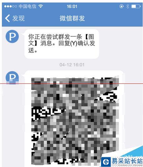 4、此時會生成一個二維碼,把二維碼保存在手機,用微信打開識別允許發送即可完成發送