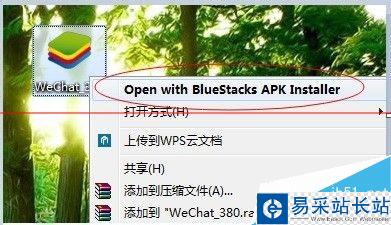 4、下載微信app在電腦上,右擊選擇使用BlueStacks安裝。